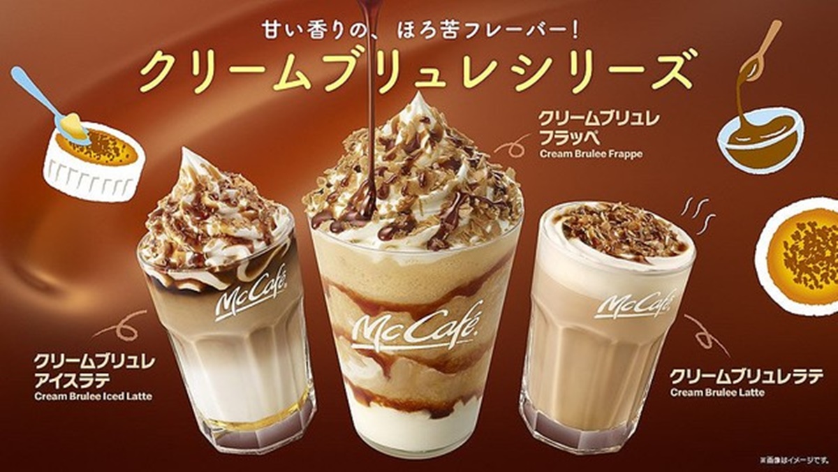 ▼除了超級療癒的「黑三角巧克力派」與「白三角巧克力派」以外,日本麥當勞也將在10/14讓先前人氣超高的「烤布蕾系列」限定回歸啦,其中包括「烤布蕾冰沙」、「烤布蕾拿鐵」,香濃的焦糖奶油香氣真的讓人無法抗拒!