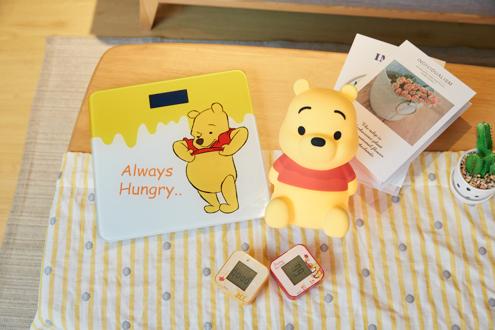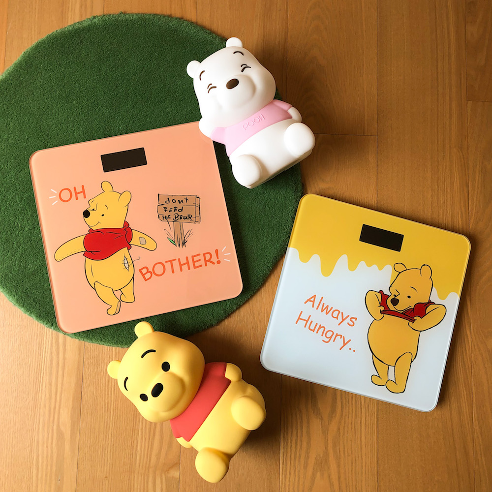 ▼體重計:天氣漸漸轉涼,準備要過冬了,一不小心就會多吃長肉肉,就讓可愛維尼的肚肚和屁屁陪你一起控制體重,克服不敢站上體重計的心;具重量、室內溫度、電量標示功能,隨站隨秤、自動關機+LCD背光顯示螢幕。集滿6點加349元,共2款(可挑款)。