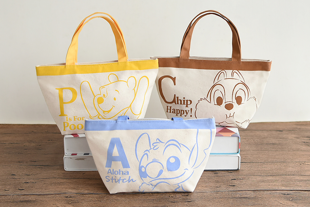 ▼可愛的迪士尼帆布便當袋,有奇奇、史迪奇與維尼3款,手繪線條風超有質感,搭配保鮮盒一起野餐囉~(10/21起上市)