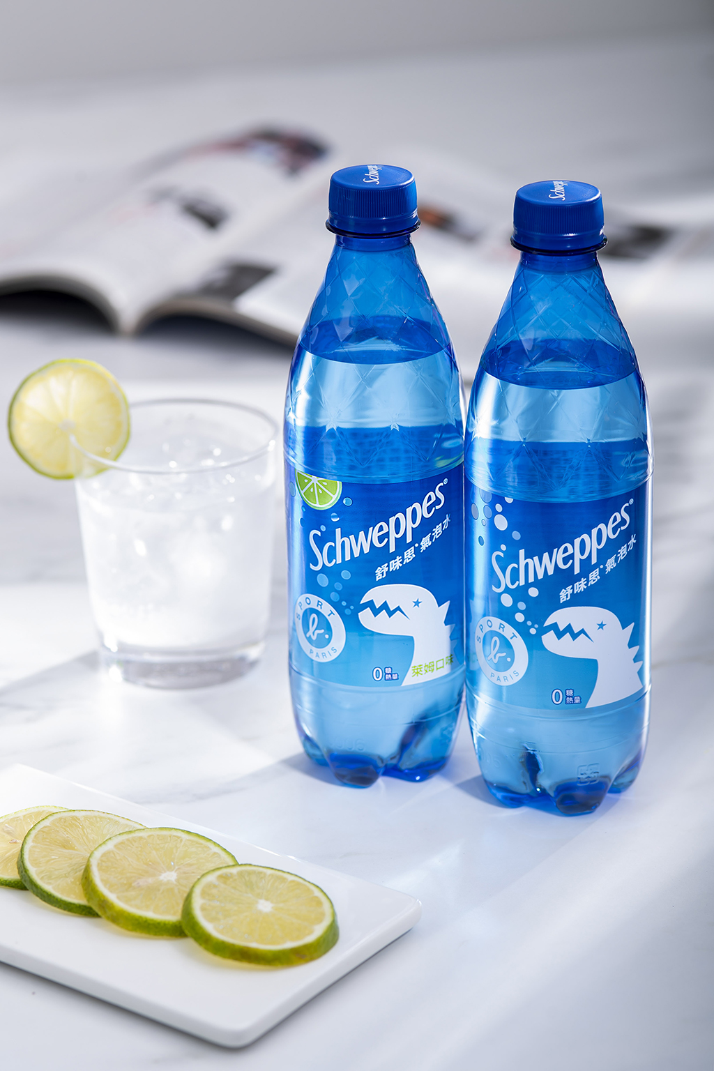 ▼「Schweppes舒味思」氣泡水擁有豐沛的氣泡與優雅的藍色瓶身,其時尚形象深受消費者喜愛,今年更全面升級瓶身為鑽石菱格紋,創造更具時尚水感的雅緻瓶身。