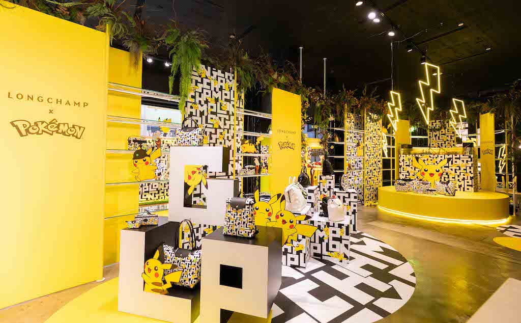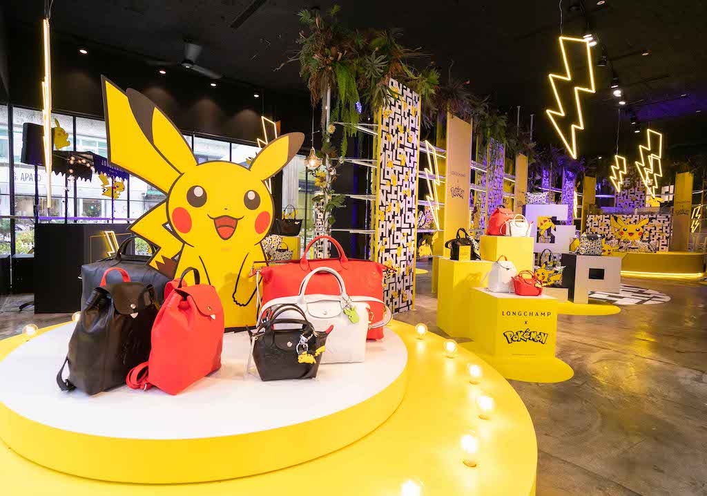 2020年10月22日法國品牌Longchamp 結合萌趣的寶可夢角色,推出Longchamp x Pokémon聯名系列,並與Marais瑪黑家居中山門市合作,設置為期半個月的快閃店中店,並與 P&T柏林選茶合作推出期間限定的「電系雷夢」皮卡丘主題下午茶組合每套$390,10/16~11/1 邀請你來一起放電。