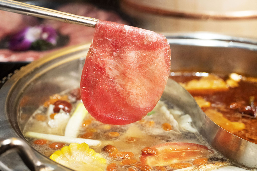 ▼不僅如此,罕以使用於火鍋的「澳洲特級牛舌」本次也加入活動行列,清涮幾回呈粉嫩色澤,口感爽脆Q彈,是肉控極致享受!