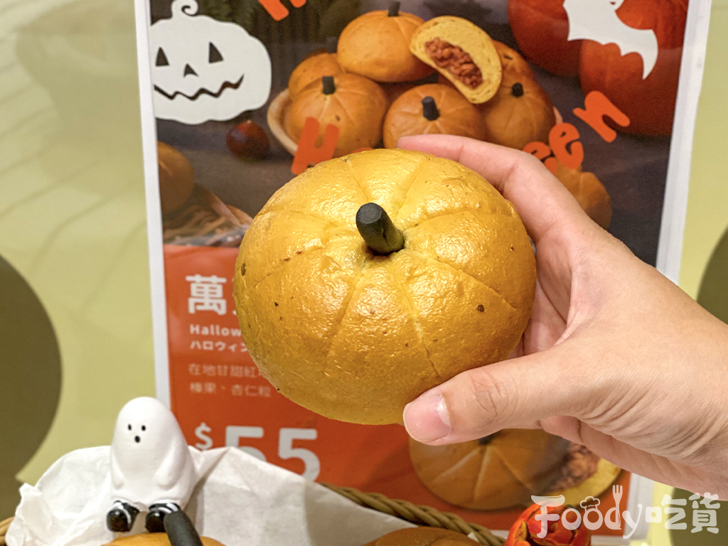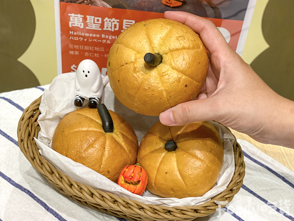▼「萬聖節貝果」一口咬下的鬆軟甘甜與栗子香氣,盡是秋季時令與節慶不可錯過的的甜香滋味。同時應景萬聖節的Q萌南瓜造型不論送禮或者在萬聖節派對上享用都非常適合,粉絲們千萬不能錯過!
