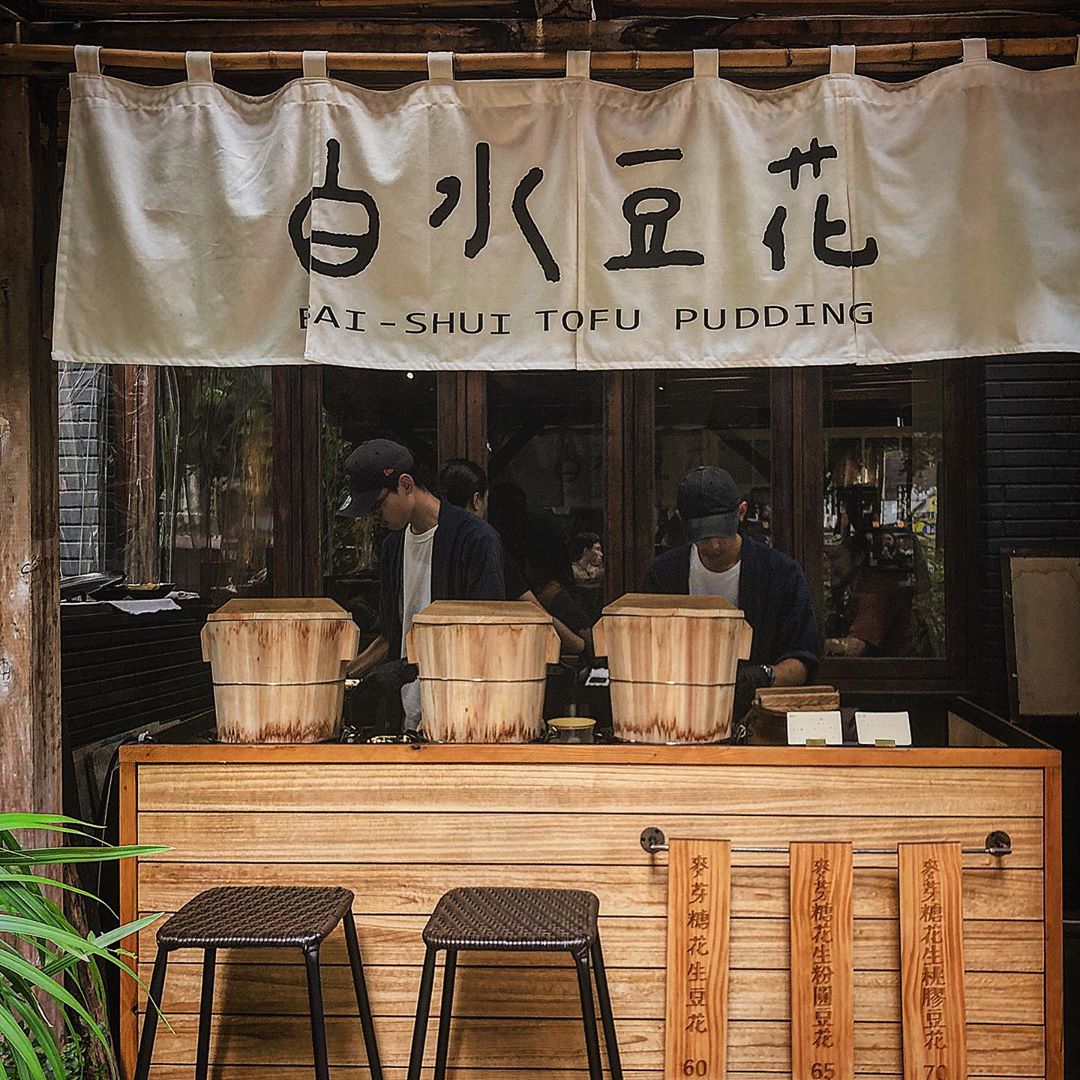 ▼「白水豆花」在宜蘭礁溪、台北永康的兩家店,使用雪山山脈水源製作豆漿,加入東岸太平洋深層海水當作天然凝固劑,融合山、海間微量元素做出來的「鹽滷豆花」,讓豆花的口感能夠更加滑順。