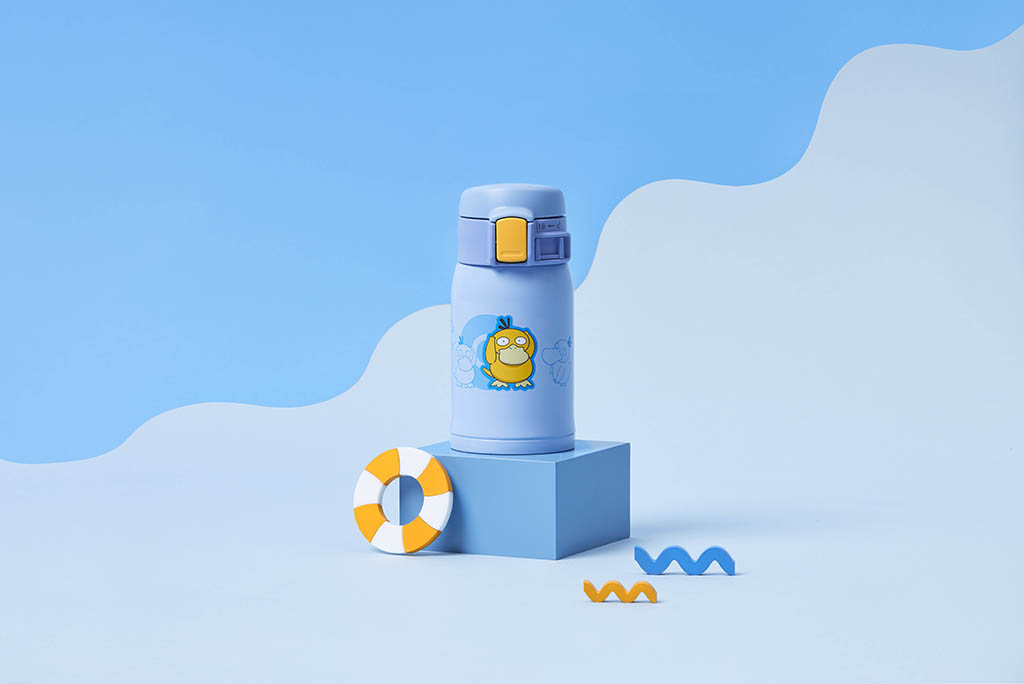 ▼限量禮盒中內含一組四入的象印One Touch迷你保溫杯,瓶身設計分別為胖丁、伊布、皮卡丘、以及可達鴨,以相當可愛生動的姿態環繞瓶身,再以四隻寶可夢各自的兩種代表色作為瓶身與杯蓋按鈕撞色搭配:粉色瓶身的胖丁搭配藍眼睛的藍色按鈕、橘色瓶身伊布搭配咖啡毛色按鈕、黃色的皮卡丘有著可愛腮紅的紅色按鈕、以及藍色瓶身可達鴨則以招牌色黃色按鈕來呈現。