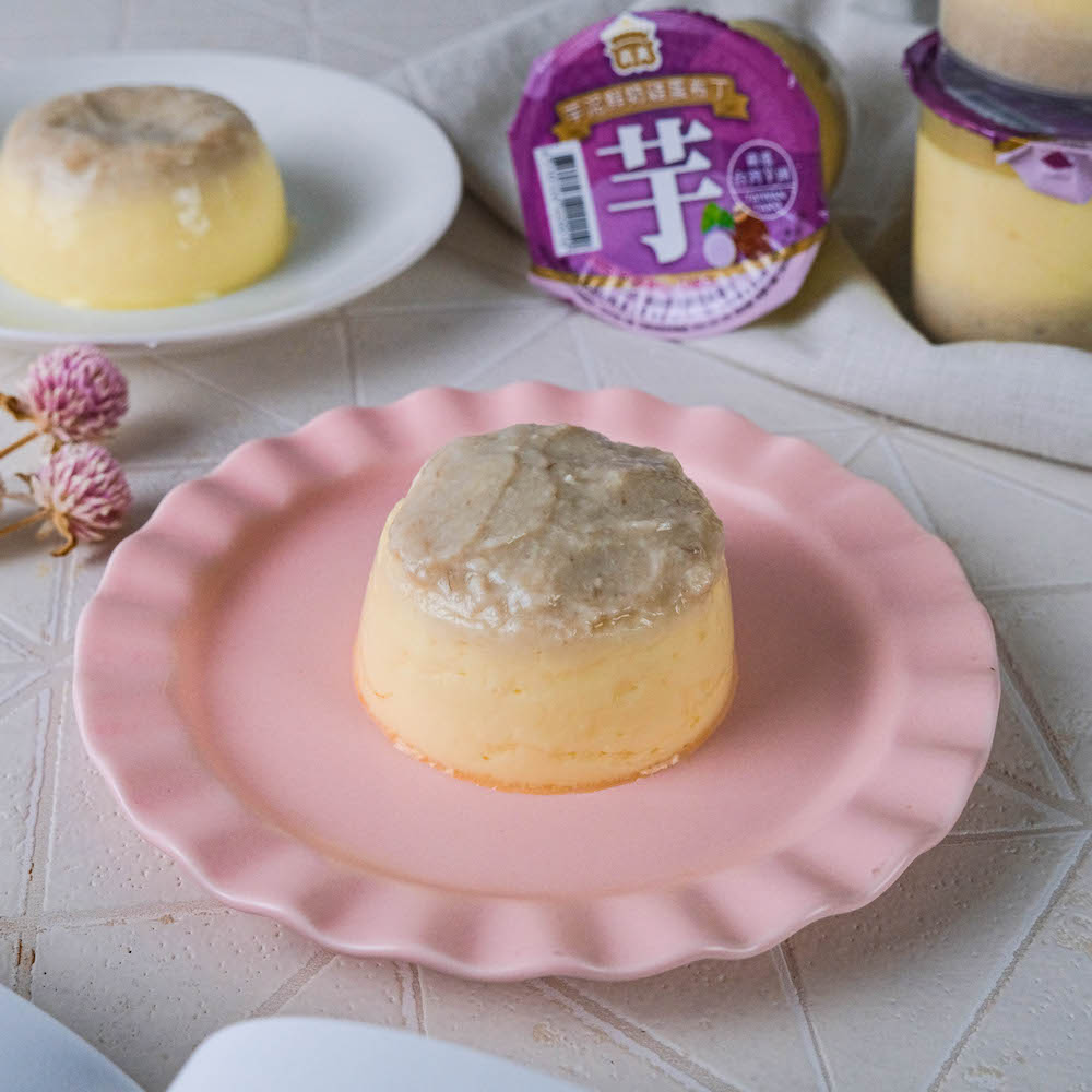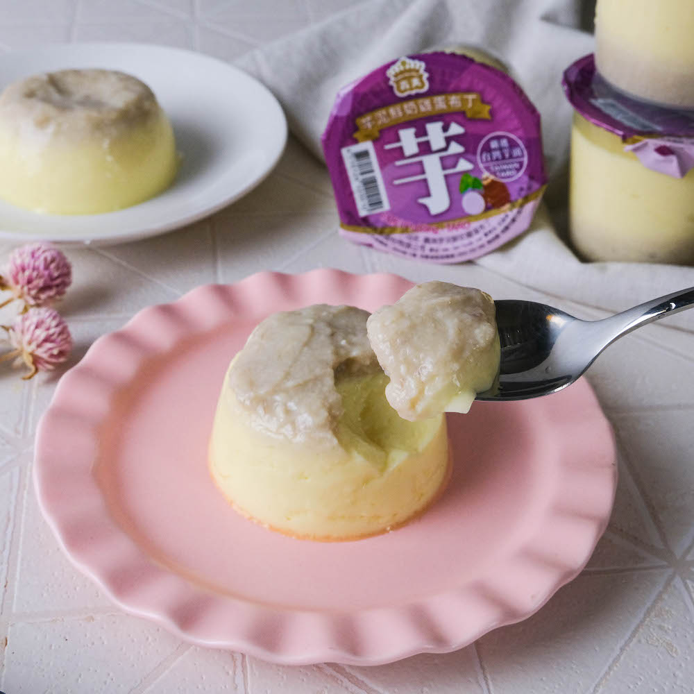 ▼在Q彈的布丁上,加入嚴選台灣芋頭,調製成香醇綿密的芋泥鮮奶雞蛋布丁,每一口都吃得到芋泥餡料的綿密口感。豐富的層次最適合下午茶拿來當做點心,吃完一盒還想再吃啊!