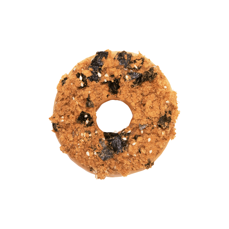 ▼「海苔肉鬆甜甜圈」用道地的美式經典原味糖霜甜甜圈撒上滿滿的台式海苔肉鬆,肉鬆與糖霜的巧妙結合,是你意想不到的幸福滋味!