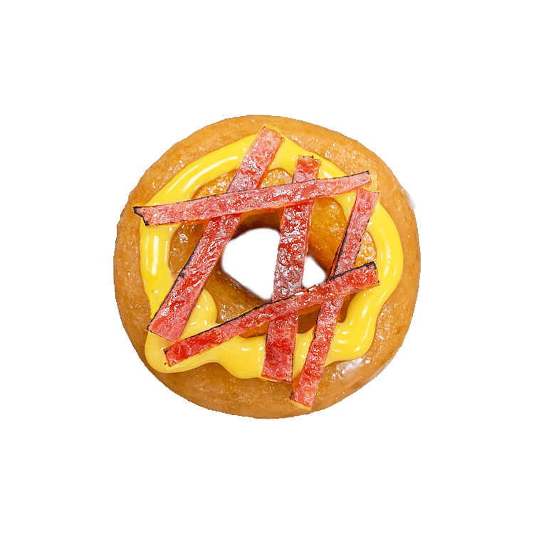 其實肉乾、肉鬆本身就是鹹甜鹹甜的,加進甜甜圈裡一定也很搭啦!是時候準備衝一波Krispy Kreme囉~