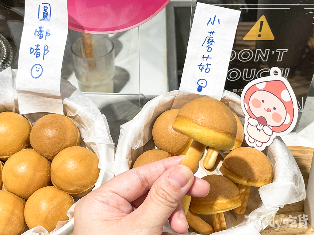 ▼「Q du duu漫步圓嘟嘟小鬆餅」專賣Q軟Q軟的小鬆餅,鬆餅使用台東初乳鮮奶與法國鮮奶油製成,香氣十足的風味太療癒!小鬆餅乍看之下有點像章魚燒,外型超級吸睛!另外,還有蘑菇形狀的小鬆餅,螞蟻人們可以依照自喜好選擇喜歡的口味~