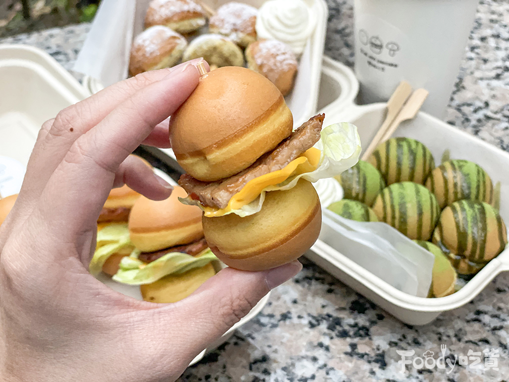 💰小山園抹茶圓嘟嘟 $120、起司漢堡排小堡堡鬆餅$120、唐寧伯爵茶蘑菇小鬆餅$100