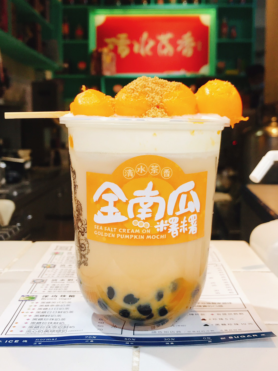 想不到可以把南瓜、麻糬和珍奶結合在一起,這口味太新奇不喝不行啊!