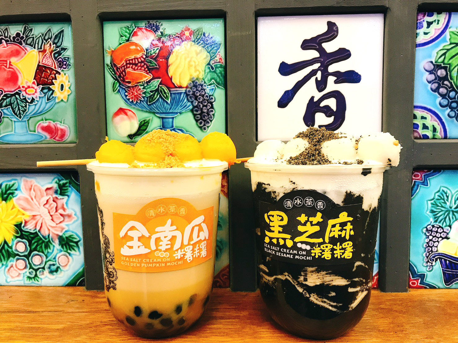 ▼來自台中海線消波塊的故鄉,26歲的在地手搖飲「清水茶香」,以網美最愛的台灣老花磚裝潢以及招牌綠豆沙,與內行飲料控一定知道的、首創「用喝的月餅」流心奶黃啵啵奶。繼10月推出「紫芋相思啵啵奶」,掀起一波口感系搶購熱潮,被網友暱稱為「咀嚼系手搖品牌」的清水茶香,11月再度推出秋冬療癒系兩款期間限定新品「黑芝麻糬糬」、「金南瓜糬糬」!