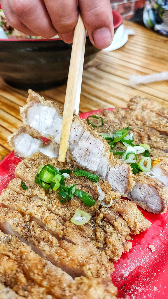 ▼當然還有鹹香鹹香的燒肉也是涮嘴到讓人忍不住一口接一口,看看這燒肉和蚵仔酥滿到都看不到白飯了,只能說老闆給料真的沒在手軟啊,這一碗吃碗絕對會超滿足!