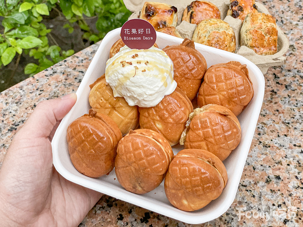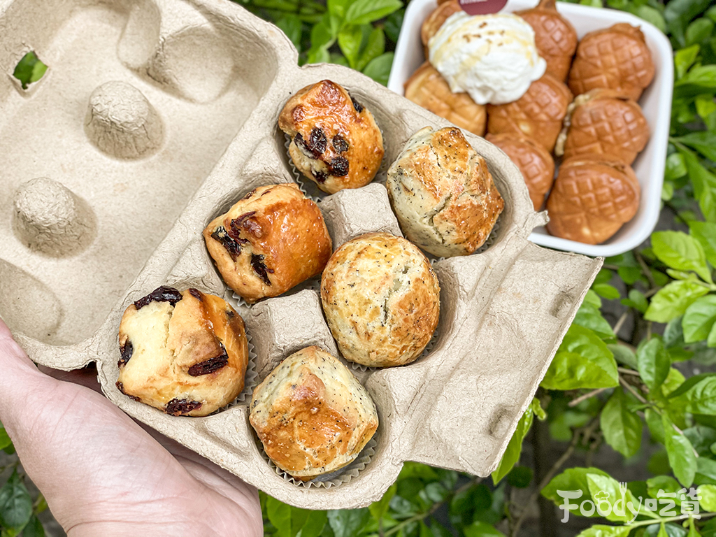▼另外,「花果好日」還有一款療癒系商品,就是超級欠吃的迷你司康啦,司康的口感吃起來相當紮實~而「迷你司康」共有蔓越莓和伯爵茶兩種口味,蔓越莓吃起來是酸酸甜甜的滋味,配上司康餅皮一起享用超級完美!伯爵茶一入口就能感受到濃濃的茶味,喜歡茶系甜點的螞蟻人們選這款就對了!