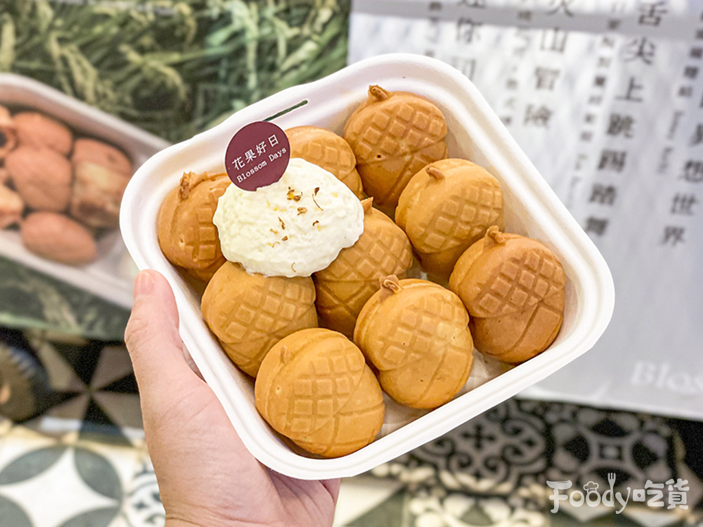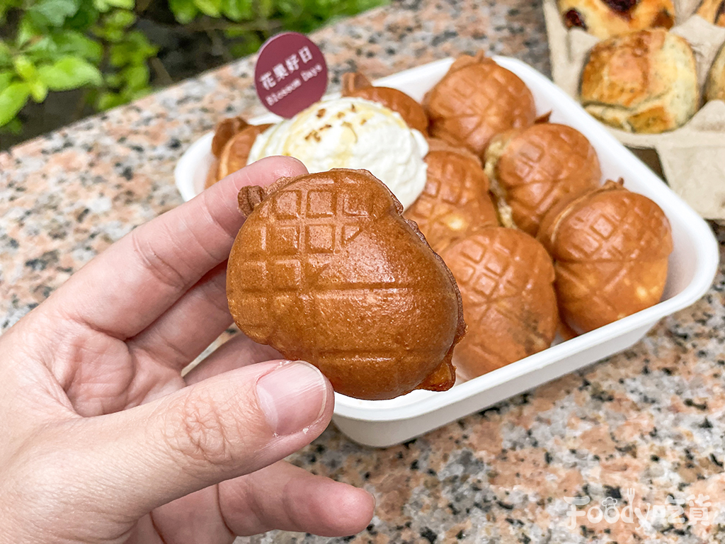 ▼值得一提的是,「花果好日」的雞蛋糕是栗子造型,完全就是要可愛到讓人捨不得吃啊~店家還會在雞蛋糕旁擠上鮮奶油和花蜜,一口鮮奶油配一口雞蛋糕實在太邪惡啊~~