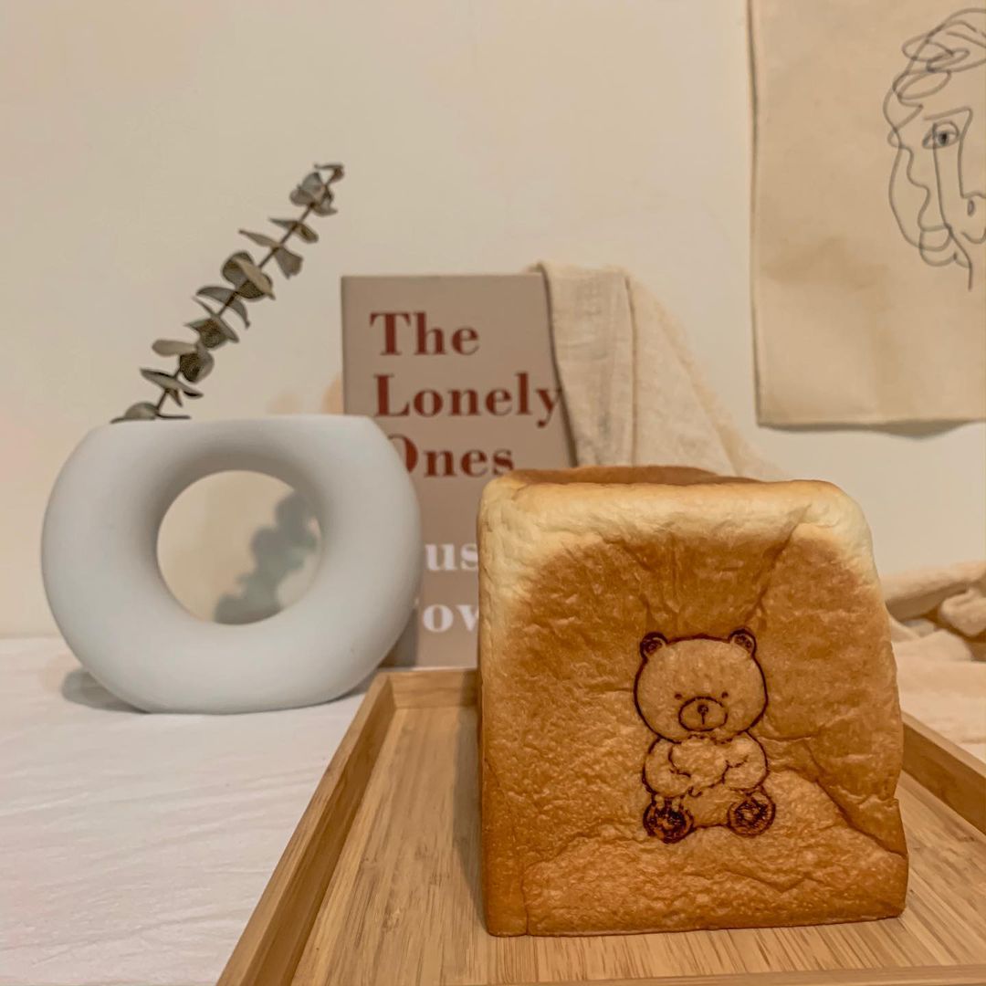 ▼最可愛的吐司上還印有萌萌小熊圖案,這樣好拍又好吃的生吐司,分明是逼人一次買個10條回家啊!XD