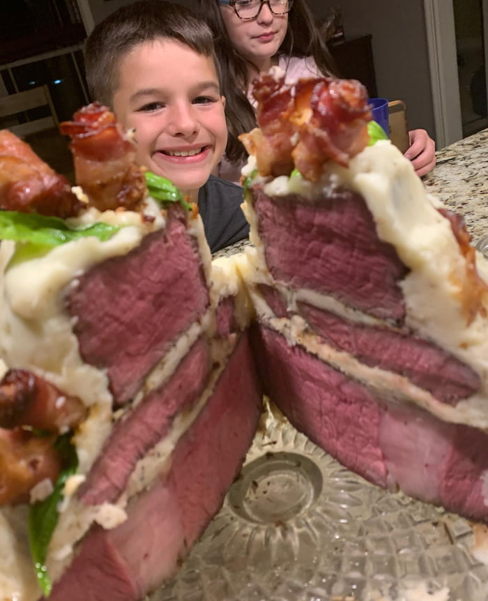 2020年11月16日現在人過生日,免不了要在這一天吃蛋糕慶祝。小孩過生日的話,家長會根據孩子的喜好客製化蛋糕,或自己動手做。國外一位爸爸為兒子慶祝9歲生日時,就親自做了一個蛋糕。不過這個蛋糕是用牛排做的,肉食星人看到眼睛都亮了~
