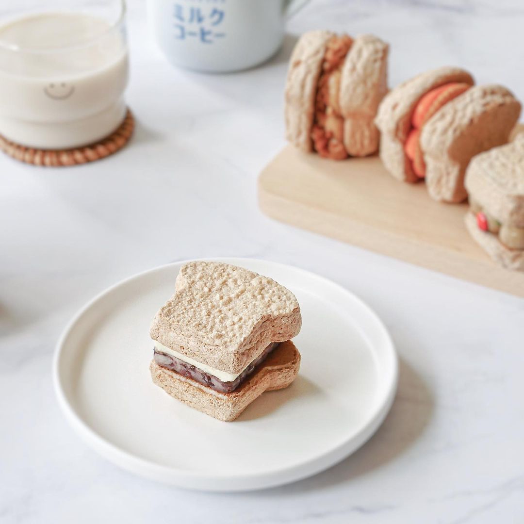 ▼一般的達克瓦滋通常是橢圓形,他們家的達克瓦滋有圓形、山形吐司造型可以選擇,小巧可愛的吐司達克瓦滋,夾著滿滿內餡,光是這顏值就已經非常加分了呀!