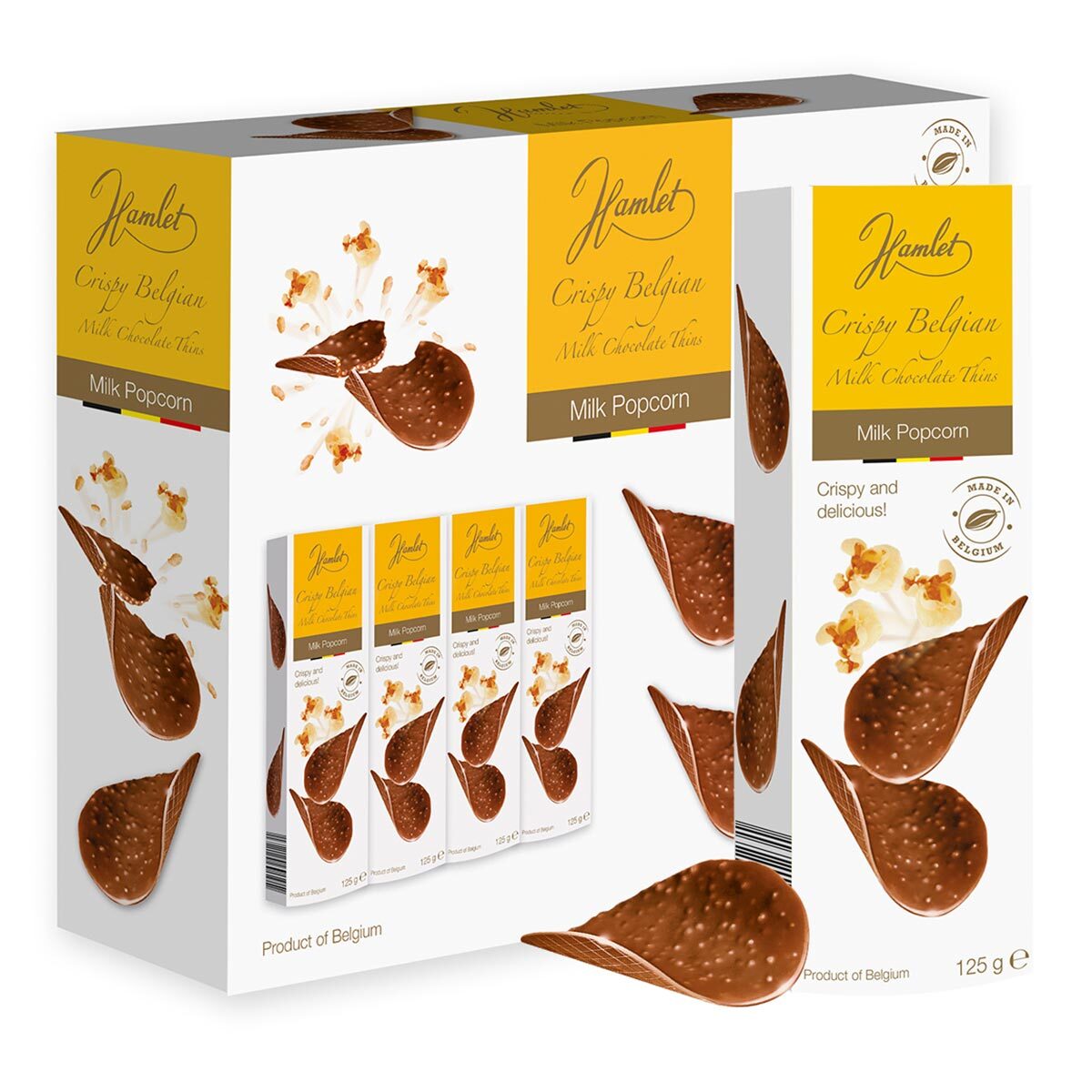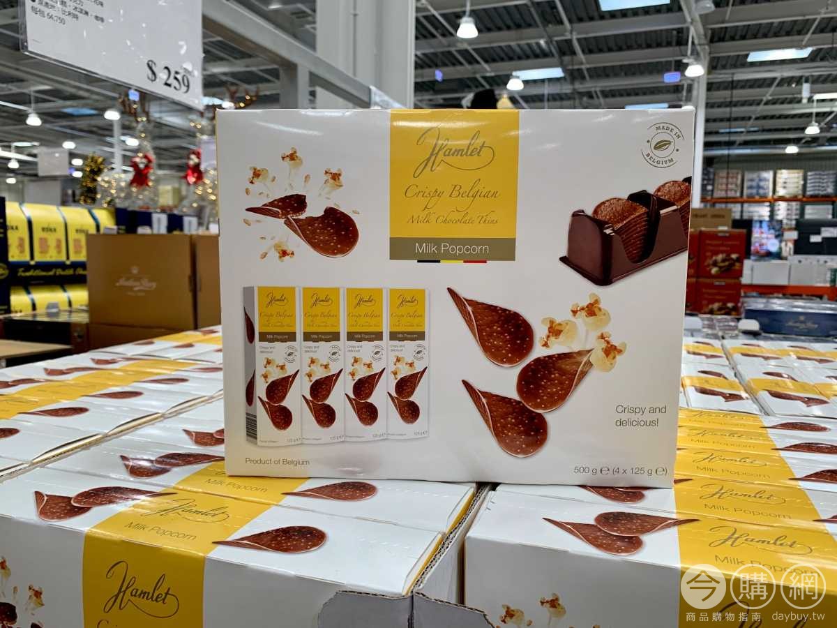 ▼這款「HAMLET爆米花脆片牛奶巧克力」每盒259元(4包入),把比利時牛奶巧克力尬入米香粒做成脆米果牛奶巧克力,巧克力吃起來香甜濃郁,搭配酥脆米香粒口感,雖然一片看起來薄薄的,但是吃起來比想像中更厚實有份量!