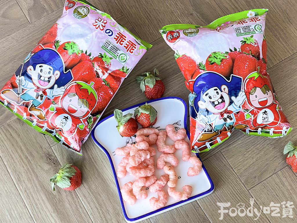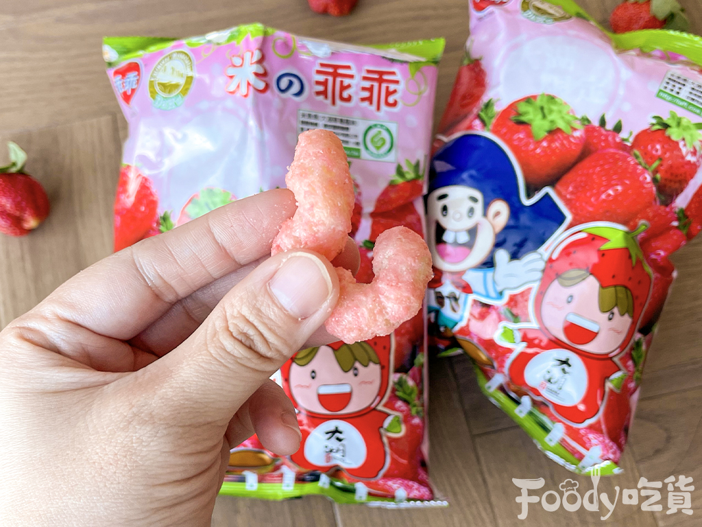 ▼米做的乖乖本身比一般乖乖多了一股米香氣,吃起來也是酥脆中帶有一點黏黏糯糯的香甜,口感讓人驚喜;而大湖草莓果粉帶有微酸以及濃濃草莓香,吃起來也不會有一般草莓零食的化學感,吃完超解饞又超幸福!