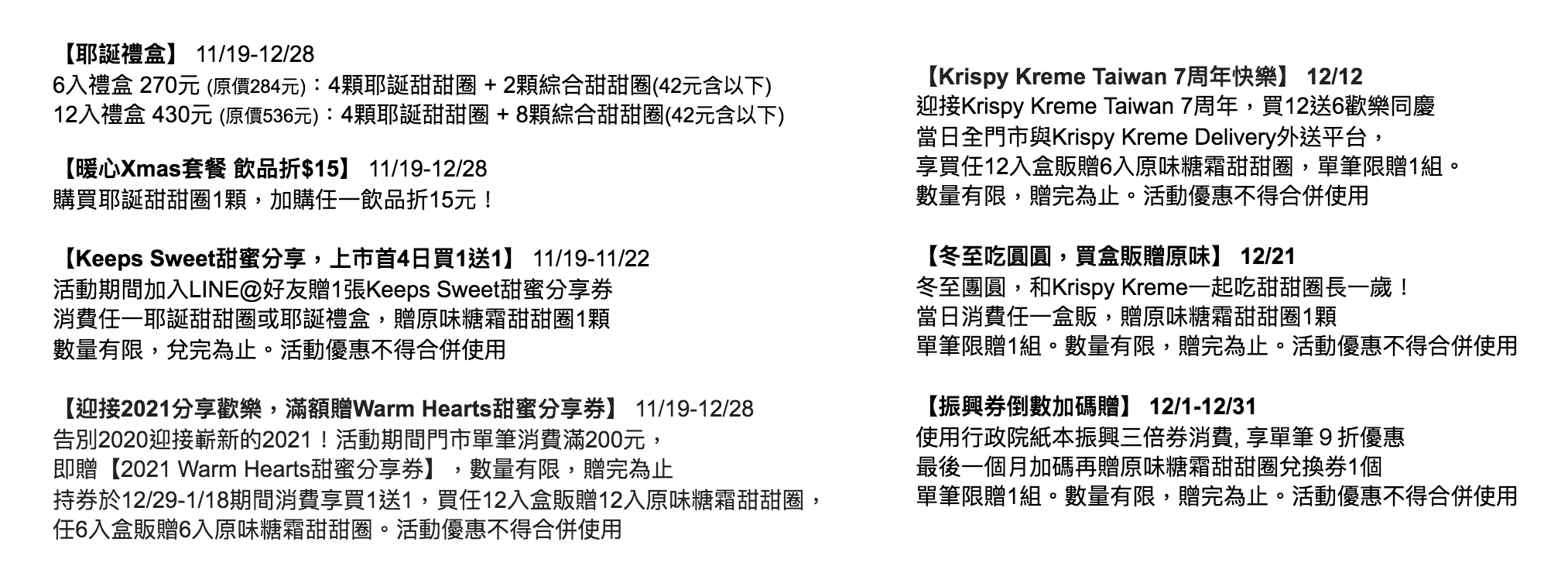2020年11月19日2020年很快地來到11月中,準備迎接今年尾聲12月的聖誕節了嗎?Krispy Kreme準備好跟大家一起歡樂,11/19起推出4款耶誕新品,一起用可愛的耶誕造型甜甜圈,迎接更多溫暖與甜蜜!