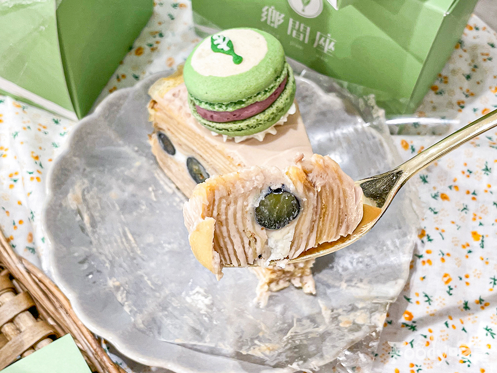 ▼另外,台中快閃店也特地推出了獨家的「馬卡龍千層蛋糕」口味,內餡選用莓果製作,一入口是絲滑細緻的口感~值得一提的是,千層蛋糕上還放上了特製鄉間座logo馬卡龍,直接把兩種甜點一次滿足~