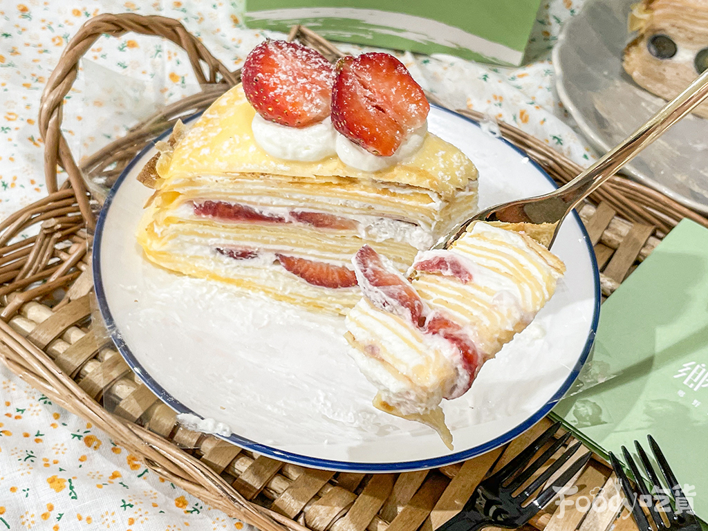 ▼首先要來介紹的就是季節限定的「草莓千層蛋糕」,嚴選新鮮草莓製作,酸酸甜甜的口感搭上Q嫩餅皮,是一款不論大人或小孩都會愛的甜點!