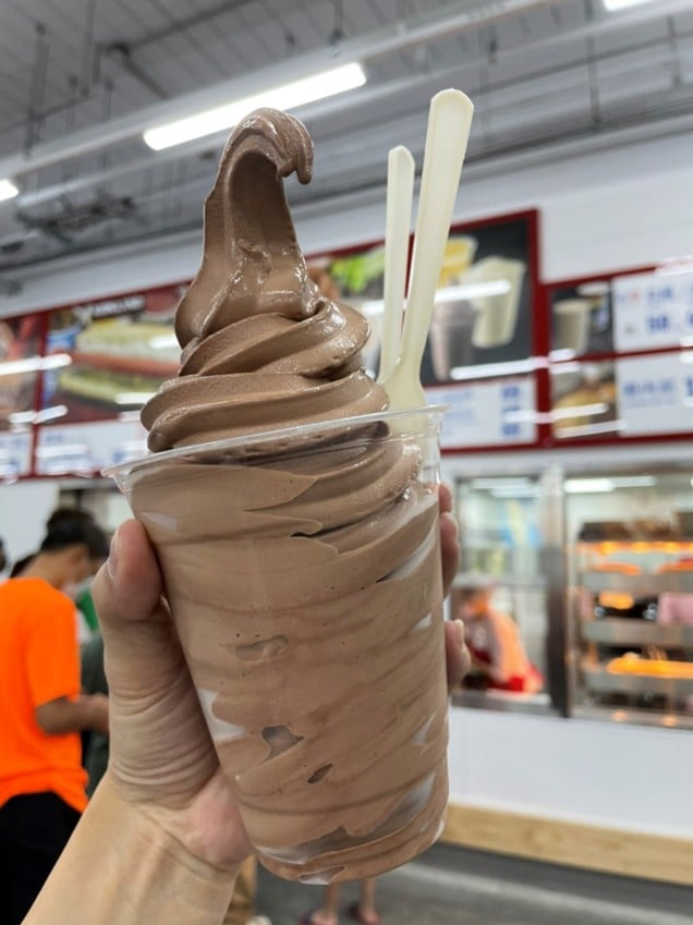 ▼Costco北台中店雖然引發排隊人潮和車潮,不過網友在臉書社團「Costco好市多 商品經驗老實說」表示,中午搭捷運去車位沒停滿,也不用排很久,而她在美食區更發現新品「巧克力霜淇淋」,整個杯身都擠滿霜淇淋,「挖第一口有被驚艷到!」並形容味道是非常濃郁的可可味,但又不會過於甜膩,甚至是微帶大人感的苦味。