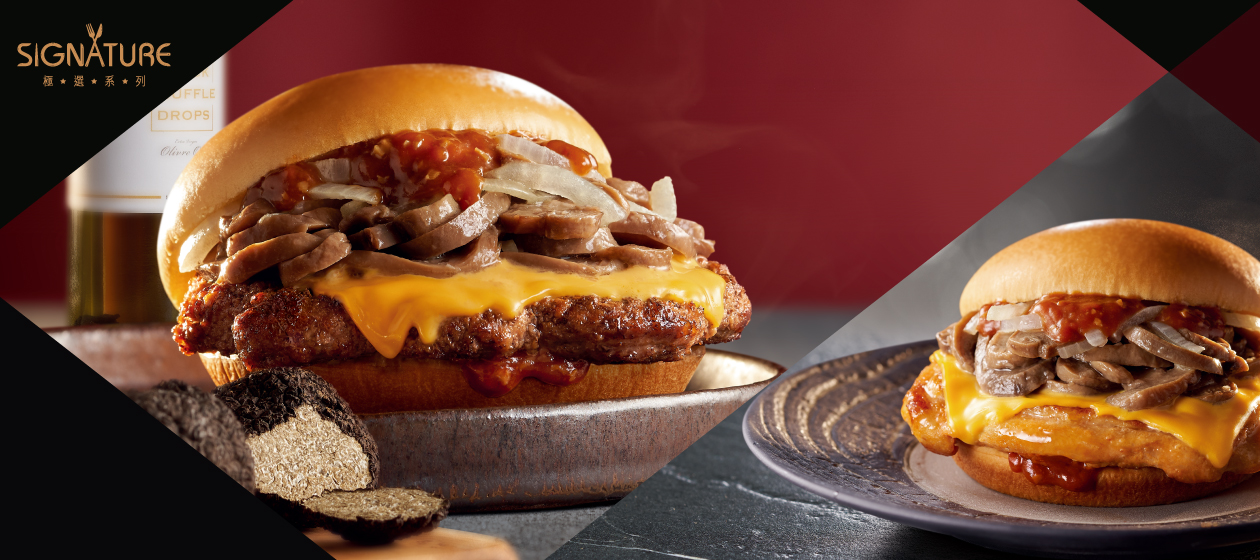 【HOT! Signature極選系列「松露蕈菇安格斯黑牛堡」、「松露蕈菇嫩煎鷄腿堡」】