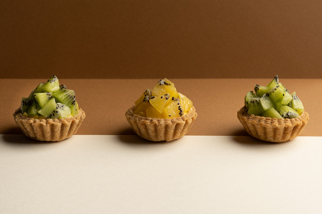 ▼「TART TAIPEI手工酥塔專門店」提供四種口味的常溫甜塔及多種季節水果塔,Chef Kin秉持對料理的講究與精準,帶領團隊研發獨特塔皮配方,耗時四日成就香、脆、酥、鬆完美口感。內餡則結合人氣料理元素,呈現焦糖布蕾塔、班蘭咖椰塔、黃金流沙塔、北海道起司塔四款常溫酥塔,售價68元/顆起,及楊枝甘露塔、無花果瑞可達起司塔、巨峰葡萄巧克力塔…等季節水果塔,售價108元/顆起,無論店內享用或外帶送禮,皆是最美好舒心的甜蜜滋味。