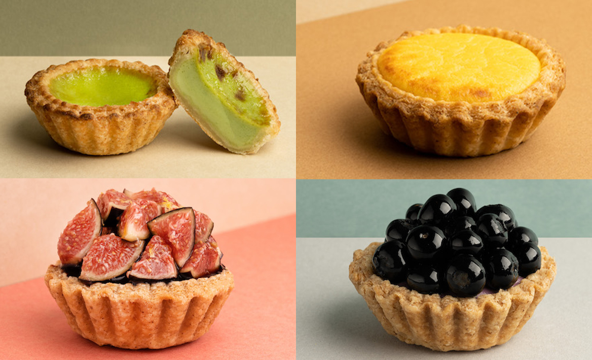 ▼「班蘭咖椰塔」(NT$ 68)以Chef Kin旗下米其林一星LONGTAIL經典甜點「法式咖椰吐司」為本,班蘭葉與椰奶的柔和幽香,焦糖醬油的鹹甜調和,洋溢南洋風情。「黃金流沙塔」(NT$ 78)內餡交融鹹蛋黃與奶油乳酪,一口咬下味蕾湧入濃郁飽滿鹹香滋味;「北海道起司塔」(NT$ 78)使用北海道奶油乳酪和鮮奶為內餡,濃純奶香中略帶酸度,輕柔綿密不膩口。「無花果瑞可達起司塔」(NT$ 138)將Chef Kin旗下米其林一星LONGTAIL人氣前菜無花果瑞可達起司以酥塔風貌創新呈現,奶香輕盈的瑞可達起司為內餡,香料波特酒醬賦予無花果醇厚甘香,有如開胃小點般舒心宜人。「藍莓黑醋栗塔」完美組合藍莓黑醋栗果醬、藍莓卡士達、新鮮藍莓三種風貌與層次,充滿酸甜莓果香氣。
