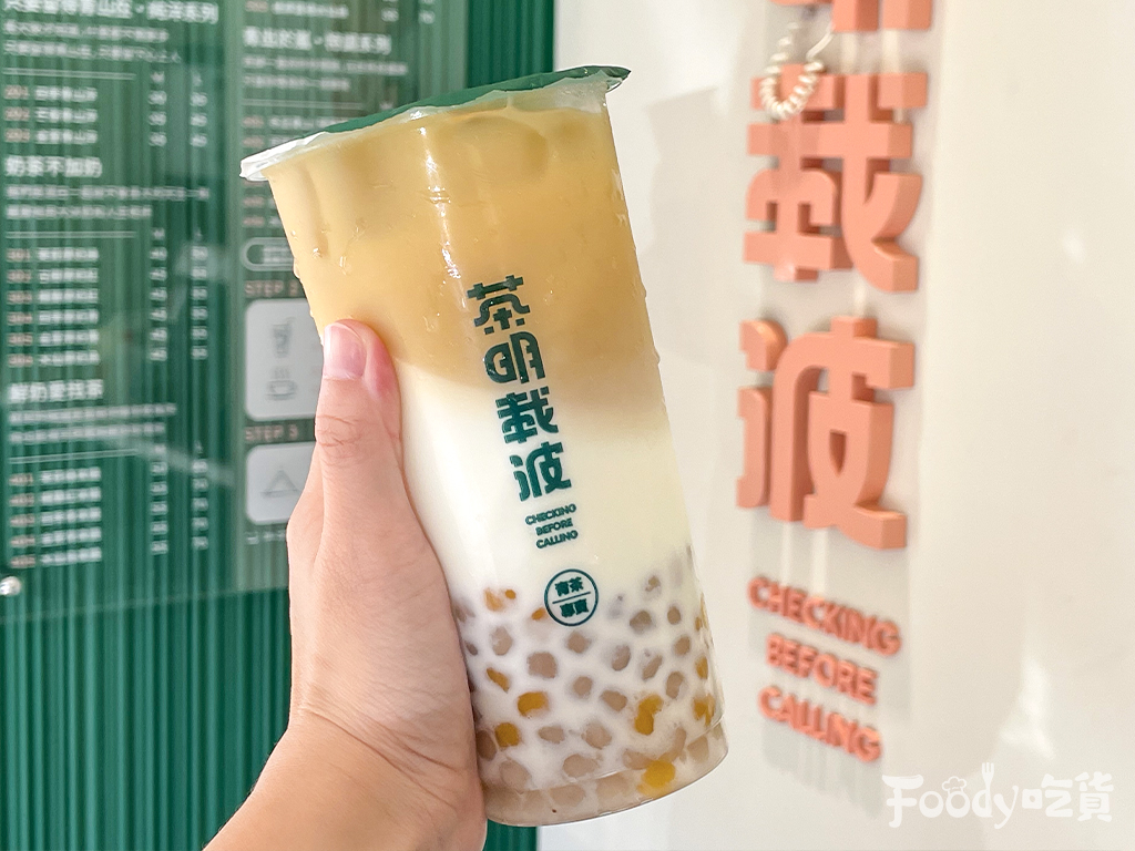 ▼「金萱青拿鐵」(NT$ 70)茶明載波嚴格選出品質好茶,這款金萱茶質地香醇,淡淡清香搭配鮮奶,茶香入口回甘、奶香明顯,另外厚奶和拿鐵系列可以免費加料一份,像是口感Q彈有嚼勁「手工芋圓」,這組合任誰喝都會愛!