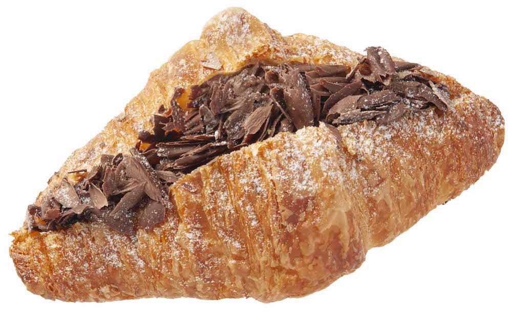 ▼「草莓可可森林」(NT$69)酥脆可頌灌入滑順香濃的可可牛奶餡,嚐起來香醇濃郁但不膩口,大方撒上黑巧克力碎片與點綴半顆新鮮草莓在上頭,視覺與味覺的雙重享受!