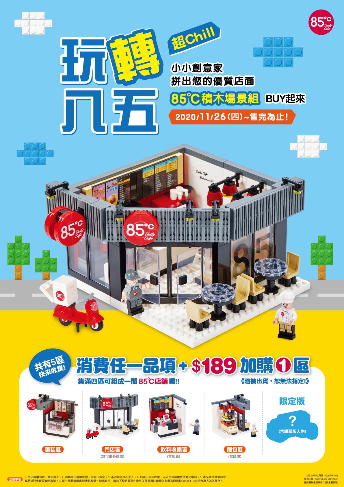 ▼85℃推出了門市主題的玩具積木,自11/26開始,到85℃消費任一品項即可加189元加購一區積木,集滿四區就可以組裝成一間迷你版的85℃店舖,四區全台限量各一萬組,除了這四區以外,還有一組限定隱藏款,全台數量只有六千個。