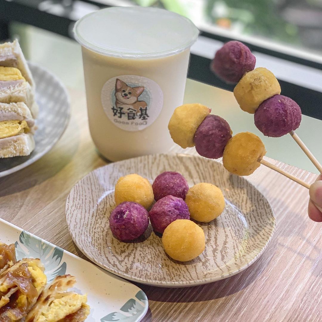 💰芋見厚蛋吐司$60、台式年糕蛋餅$55、雙色QQ球$40、微甜豆漿$30
