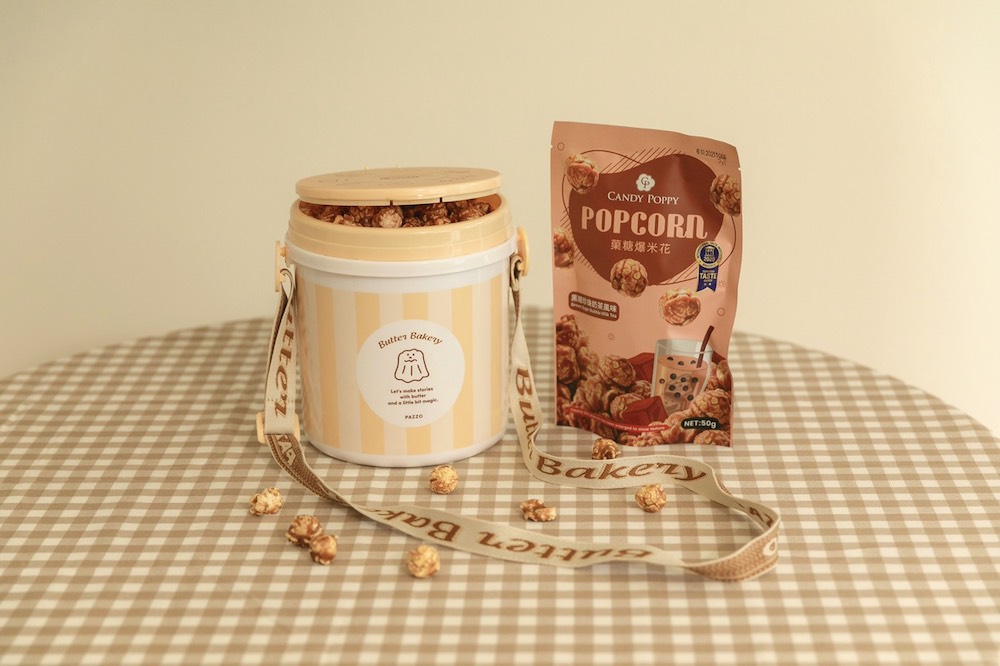 ▼這次PAZZO特別和CandyPoppy菓糖爆米花合作,推出超萌的爆米花桶,圓形的桶裝與可調式的織紋背帶設計,非常易攜帶!除了裝米花也可以當成收納桶,隨時隨地都可以營造歡樂的遊樂園感!凡購買奶油家族米花桶即可獲得CandyPoppy黑糖珍珠奶茶口味米花一包。