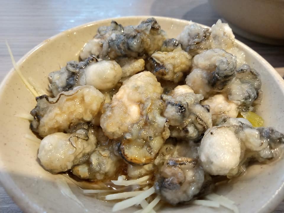 ▼來碗乾麵配乾蚵,店家貼心附上一碗清湯,這是來吃的老饕們的標準配備,裹上薄芡粉煮的蚵仔保留住肥嫩飽滿的肉質,捕捉住滑溜的口感一口咬下,蚵仔的海味鮮香在嘴巴裡擴散開來,濃郁鮮美的氣味讓人欲罷不能~