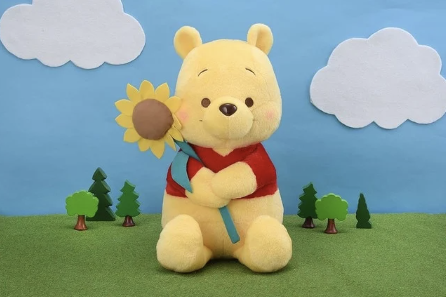 ▼接著就是這款「維尼握著太陽花的害羞巨大絨毛 $699元」,療癒的小熊維尼雙手握著一朵向日葵,臉上同樣也呈現紅通通的臉頰,讓整體看起來療癒更加倍啦!