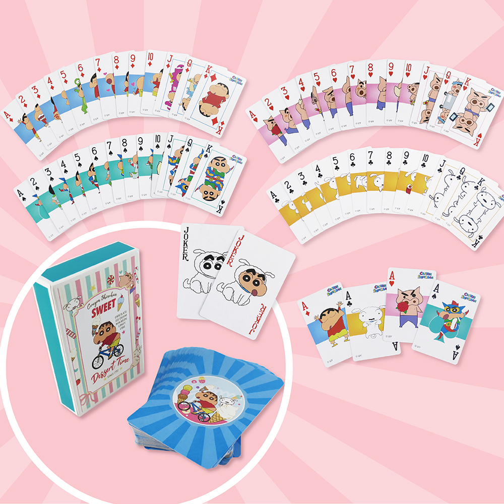 ▼蠟筆小新撲克牌:有小新、小白、不理不理左衛門與扮成動感超人的小新四種花色,每張都有不同pose,並且與一般造型撲克牌滿版的圖案不同,有確實留白用以辨別牌面,值得收藏也適合實用!
