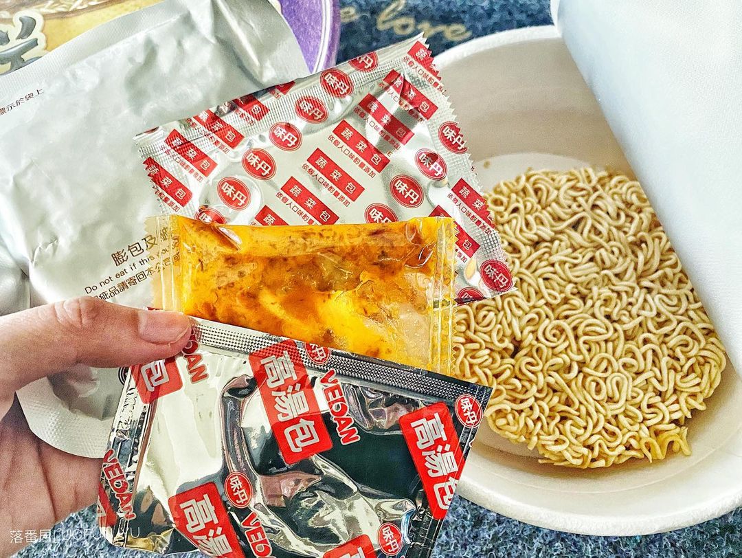 ▼每包泡麵還有附上「獨門秘製酸菜辣椒醬」,可以先品嚐原味,吃到一半之後再加入辣椒醬,口感層次更豐富!一碗泡麵就能有兩種吃法,宵夜時間來一碗再罪惡也要吃下去!