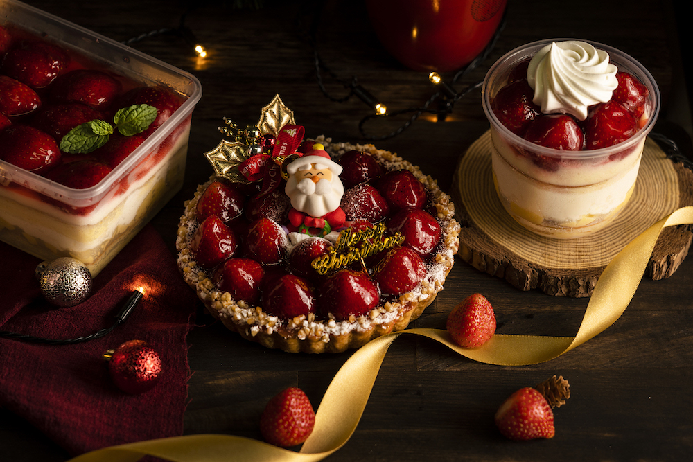 品項:法式聖誕草莓派|520元、聖誕瑪格麗特|420元、聖誕純濃鮮乳捲|380元、草莓杯杯|180元