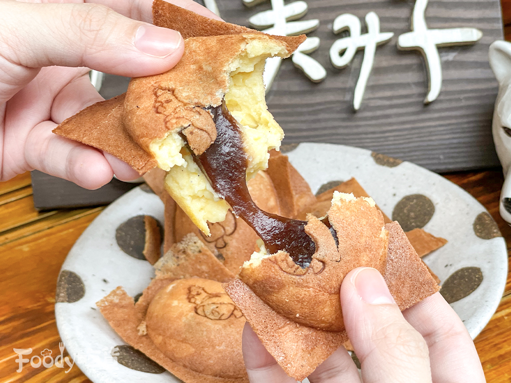 ▼最後還有「美美子みみこ雞蛋糕」也是必吃甜點,共有五種口味可以選,分別是「原味卡士達」(NT$ 65)、「京都一保堂抹茶白玉」(NT$ 80)、「黑糖麻糬卡士達、(NT$ 75)、「法芙娜巧克力香蕉」(NT$ 80)、「草莓原味卡士達」(NT$ 90)。挾著黑糖麻糬的雞蛋糕,一拉開就可以看到Q彈會牽絲的麻糬,配上鬆軟可口的雞蛋糕一起吃簡直絕配!