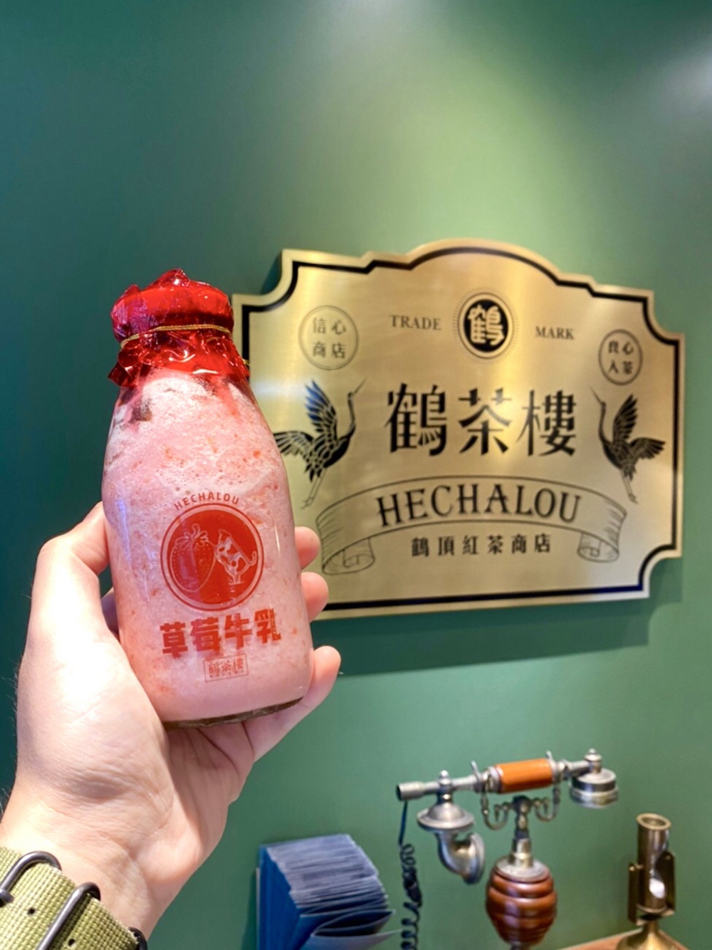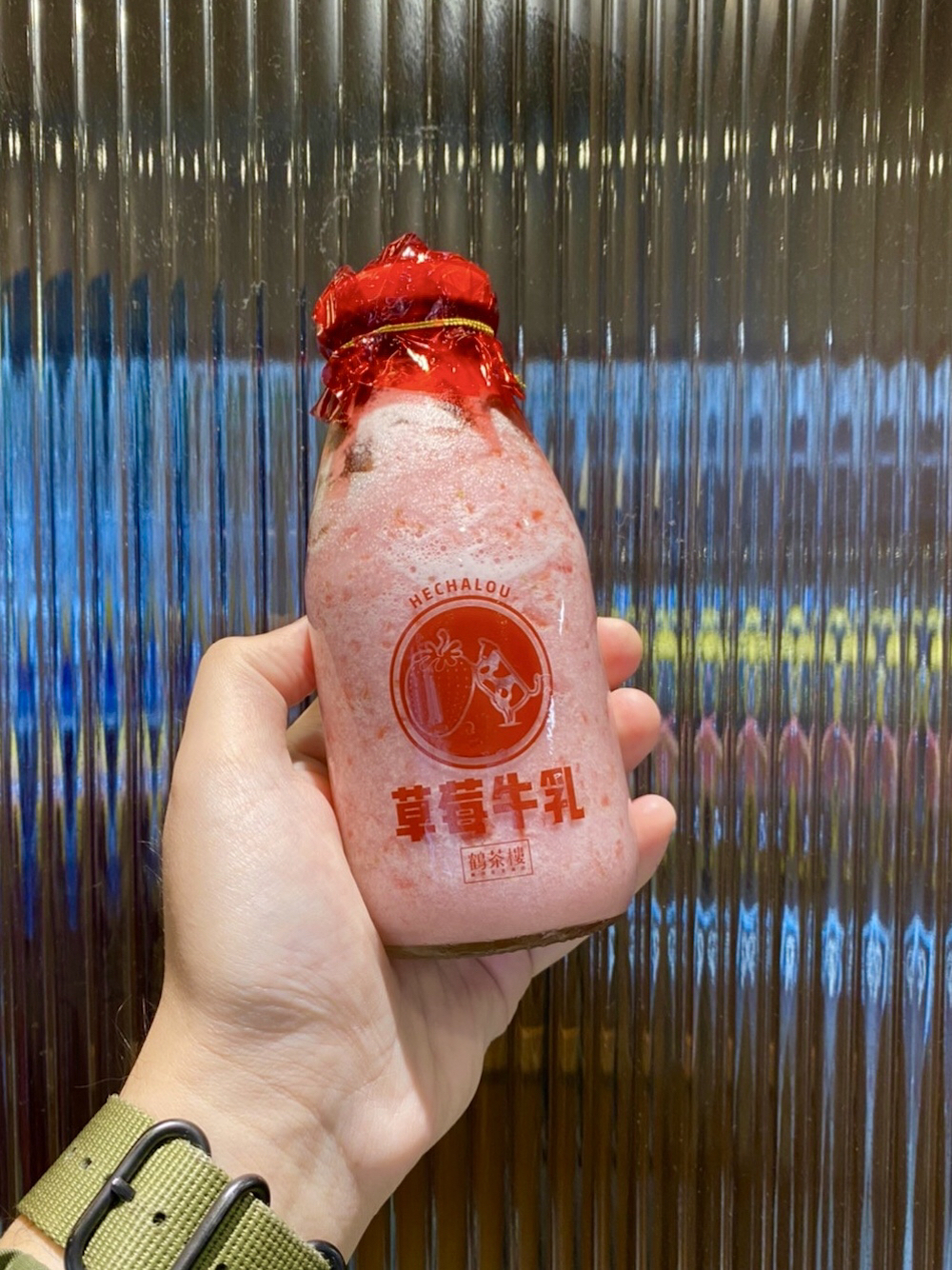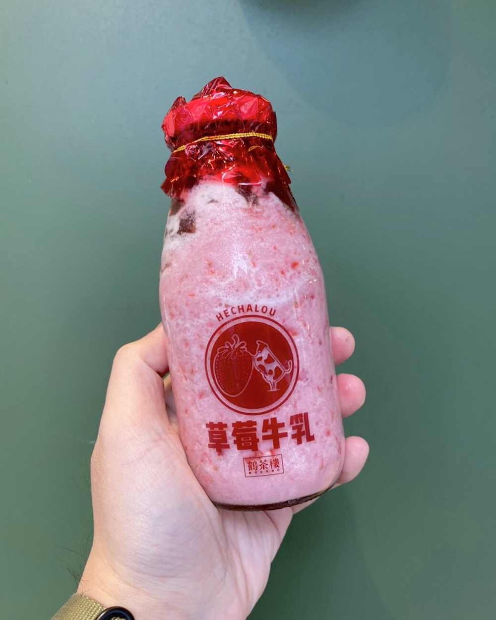 草莓牛乳配上印有字樣的復古瓶身,這款飲品也太讓人生火了,為了這個復古感必須買一杯啊~