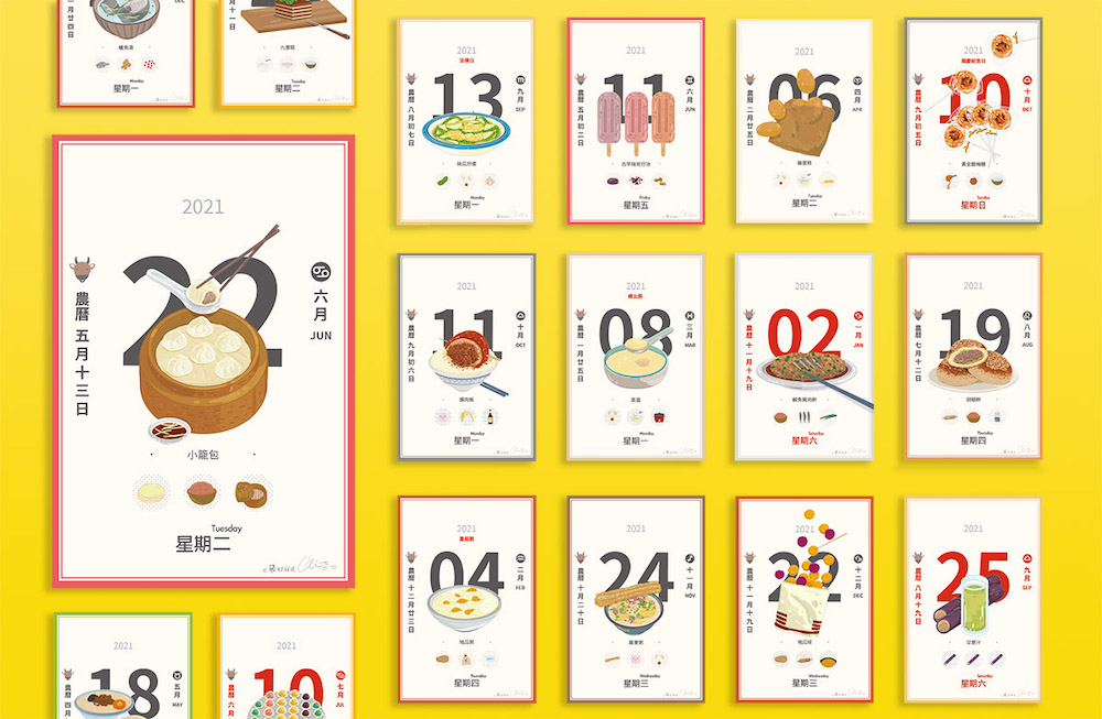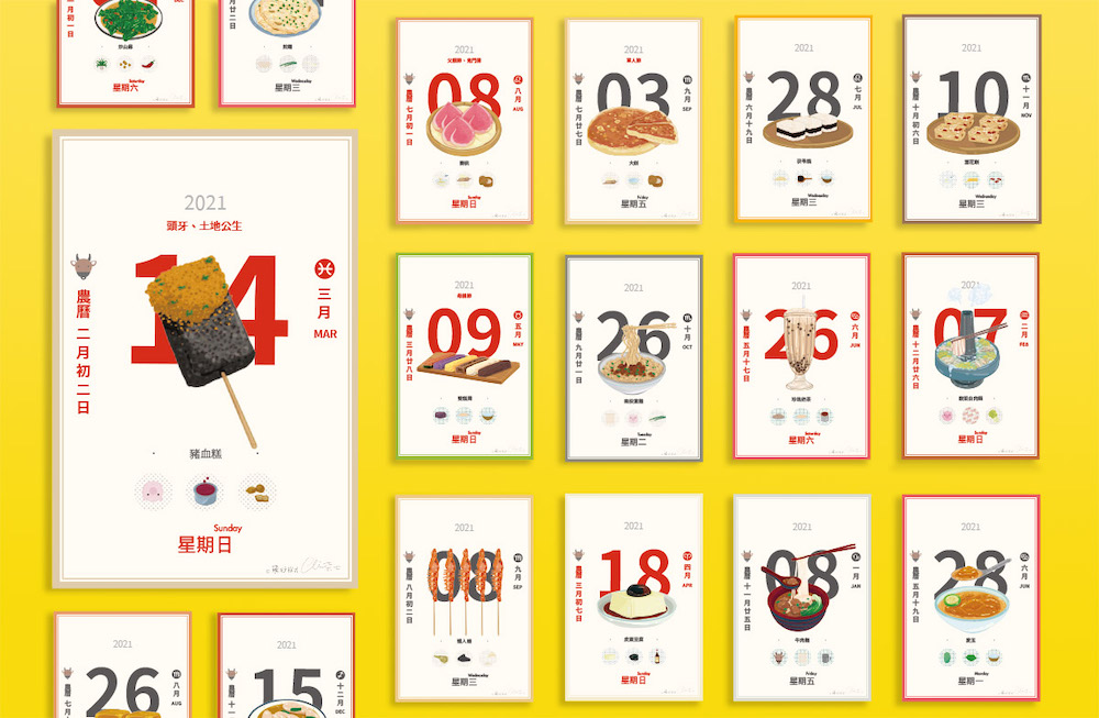 ▼從過去的一天一美食,每天畫一張圖,到累積上百張的精緻插畫,再到商品設計構思,耗費一年多的時間,終於把傳達台灣飲食文化精神的日曆設計出來啦!各種路邊小吃、家常菜、甜點、私房菜等,繪製出365道張張不同的台灣美食插畫日曆。你愛吃的小籠包、大腸包小腸、叭噗叭噗冰、五更腸旺、燒酒螺、珍珠奶茶 …都在這裡!