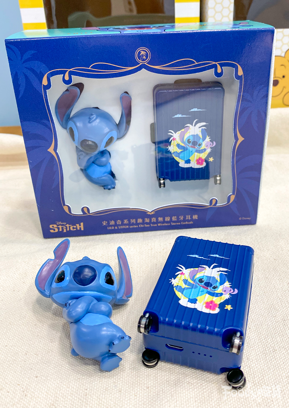 ▼「史迪奇趣淘真無線藍牙耳機」(NT$ 1980)迪士尼正式授權,創意工藝設計,「史迪奇公仔 x 迷你行李箱造型」。趣玩史迪奇元素,「可活動式」行李箱拉桿,外觀精緻、可愛十足! 開機即時智能配對,便捷操控按鈕、簡單易上手。雙色可替換入耳式耳塞,配戴穩定舒適無負擔!