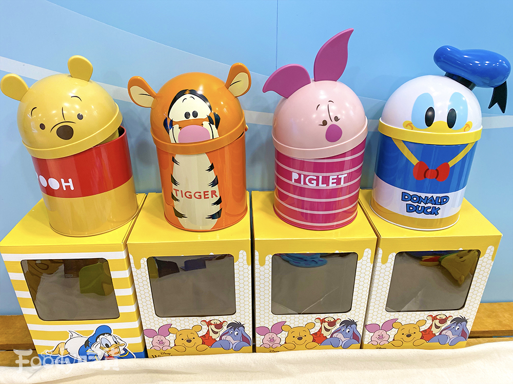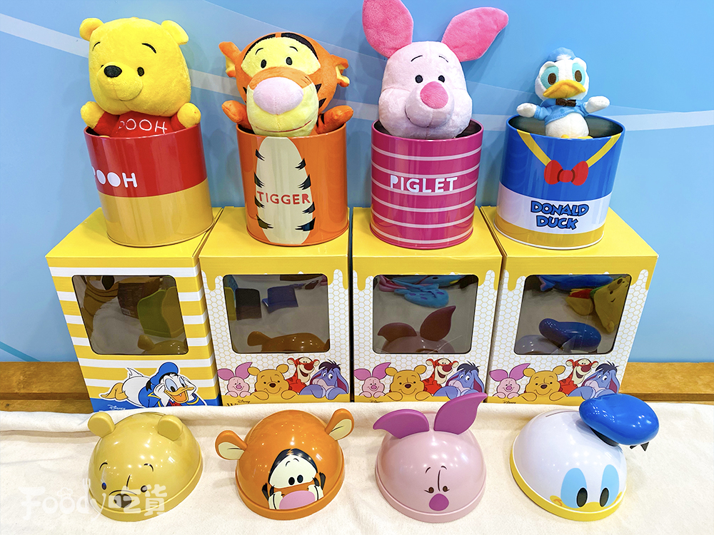 ▼「迪士尼系列布偶罐存錢筒」(NT$ 450)4款迪士尼系列造型布偶罐存錢筒,維尼、唐老鴨、跳跳虎、小豬,是存錢筒也可以是收納罐,擺在桌上更是超萌裝飾~