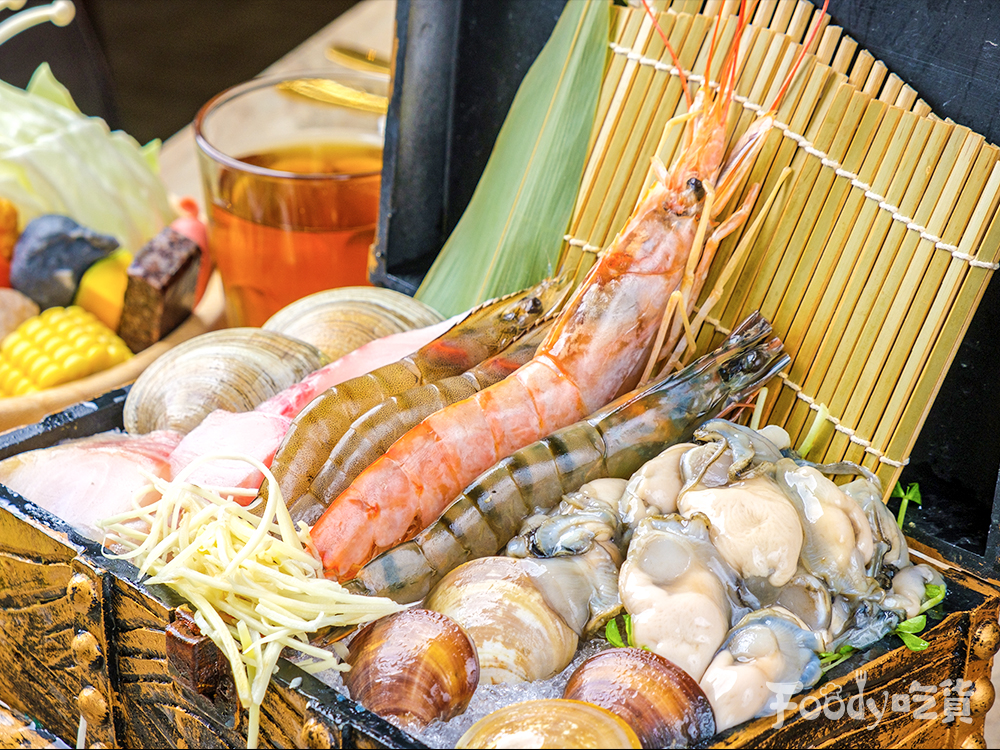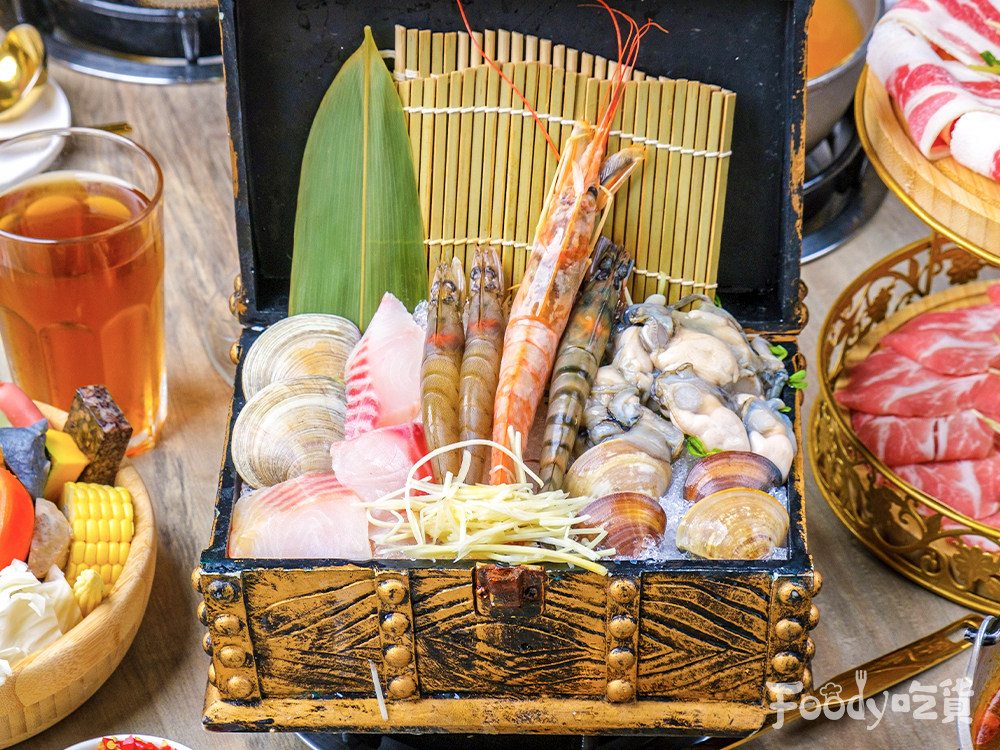 ▼值得一提的是,「大牧鍋物」還有一款愛吃海鮮的老饕們必點的壓箱寶,登登登登~就是「神秘藏寶箱」登場啦,沒錯~就是連盛裝海鮮的容器也要超級華麗,藏寶箱裡可以吃到鯛魚、白蝦、草蝦、鮮蚵、蛤仔、牛奶貝以及天使紅蝦,是不是真的太欠嗑啦,海鮮控們絕對不能錯過!