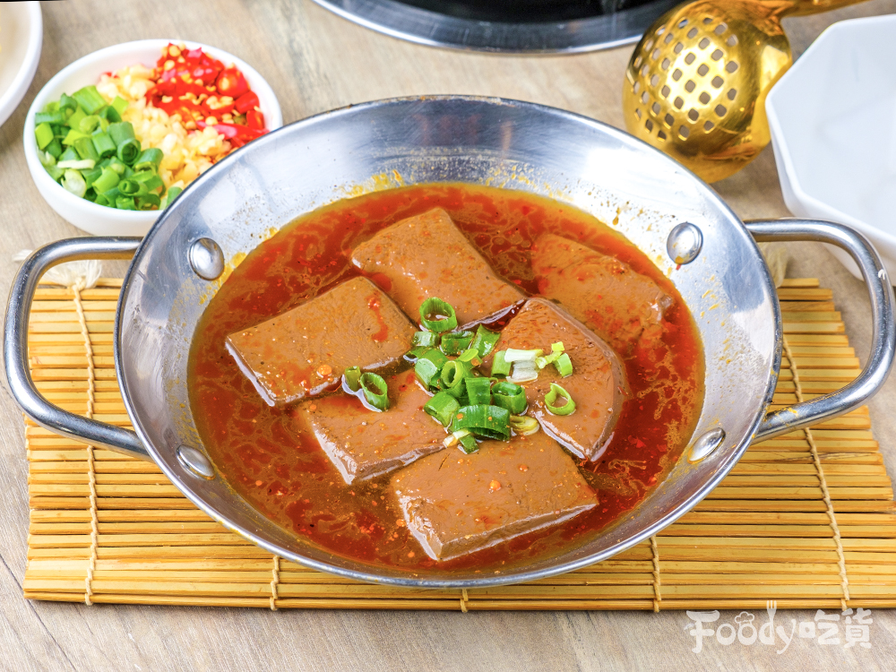 ▼不只裝潢超吸睛,鍋物的用料及品質也不馬乎,店家提供多種湯底讓吃貨們做選擇,包含原味鍋、泰式酸辣鍋、重慶麻辣鍋和養身素食鍋的,一次滿足大家的味蕾!另外,冬天就是要吃點辣才過癮,嗜辣族一定要品嚐這道主廚推薦的「麻辣鴨血」,香香辣辣的口感搭配上Q嫩的鴨血,一入口真的太涮嘴~