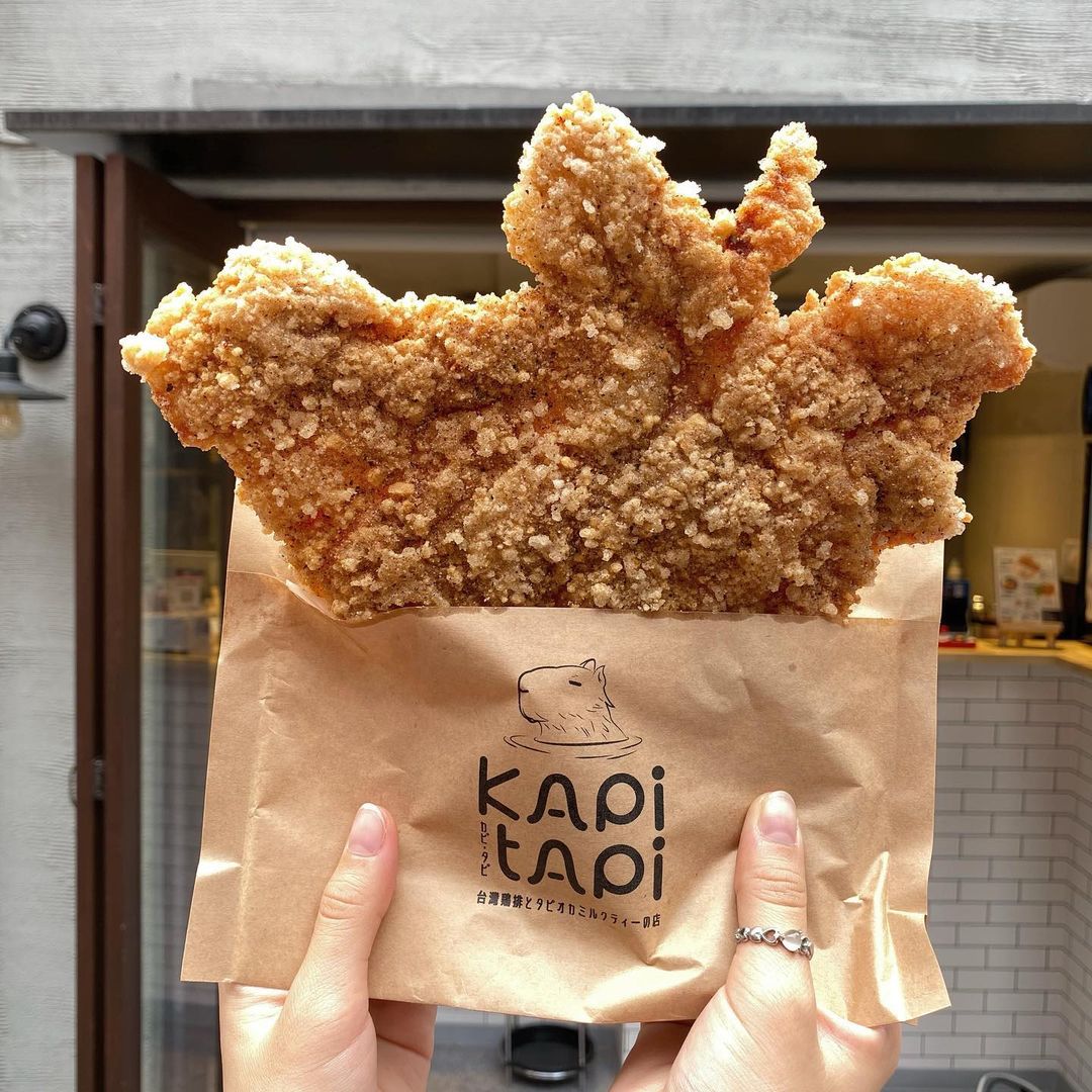 ▼日本最新的「台流」夯品美食,就是這學校、夜市周邊常見的雞排啦~浮誇的尺寸完美移植了台灣「比臉大雞排」這優良傳統與風格,搭配可愛的日系水豚君包裝,馬上成為櫻花妹們的IG新寵兒!