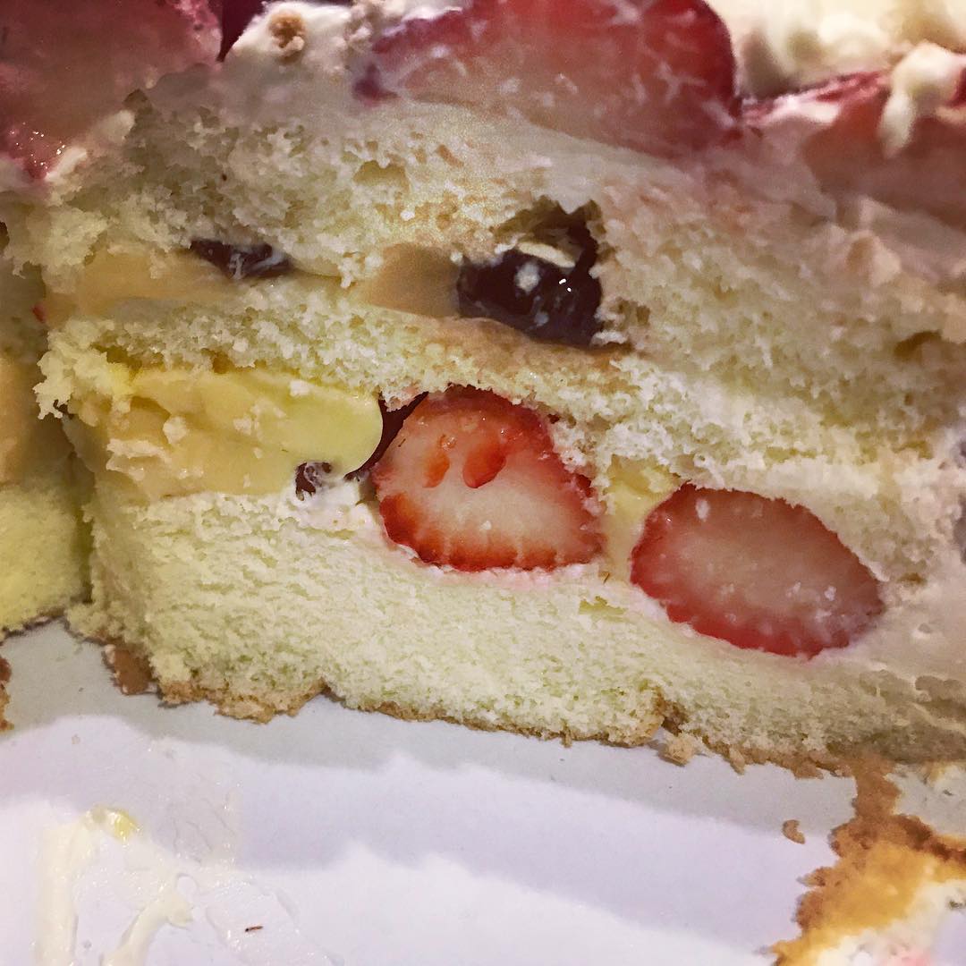 ▼10吋、12吋的巨無霸則是光看外觀就讓人嗨翻,綿密的卡士達醬,搭配鬆軟溼潤的蛋糕,以及重頭戲草莓的鮮果酸香,蛋糕層中則有滑嫩香甜的布丁;可不是這樣就結束了,蛋糕中也還有草莓,這麼多層次無愧「聖代」之名,吃起來香甜不膩超療癒!